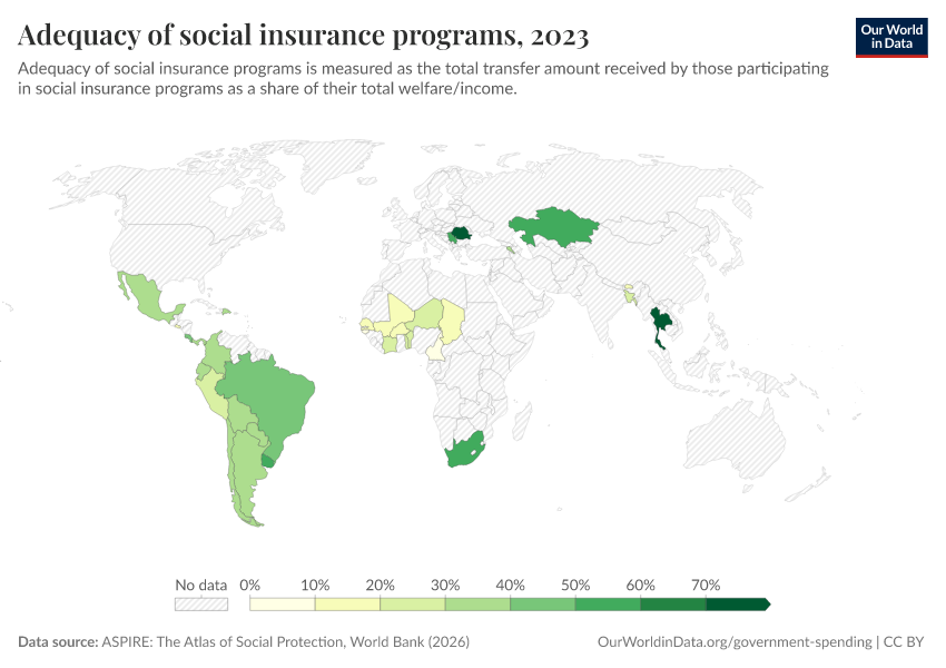 “Data Page: Adequacy of social insurance programs”. Our World in Data (2026). Data adapted from ASPIRE: The Atlas of Social Protection, World Bank. Retrieved from https://archive.ourworldindata.org/20260304-094028/grapher/adequacy-of-social-insurance-programs.html [online resource] (archived on March 4, 2026).How to cite this data