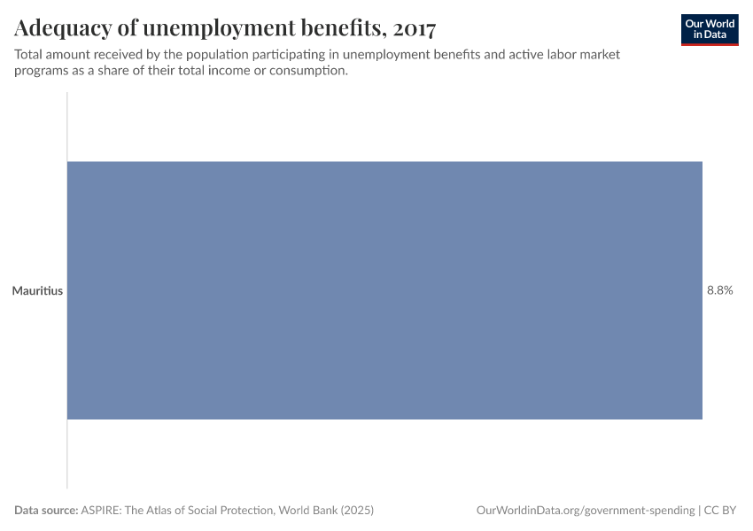 “Data Page: Adequacy of unemployment benefits”. Our World in Data (2025). Data adapted from ASPIRE: The Atlas of Social Protection, World Bank. Retrieved from https://archive.ourworldindata.org/20251220-152415/grapher/adequacy-of-unemployment-benefits.html [online resource] (archived on December 20, 2025).