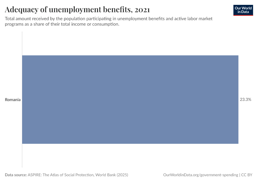 “Data Page: Adequacy of unemployment benefits”. Our World in Data (2025). Data adapted from ASPIRE: The Atlas of Social Protection, World Bank. Retrieved from https://archive.ourworldindata.org/20251220-152415/grapher/adequacy-of-unemployment-benefits.html [online resource] (archived on December 20, 2025).How to cite this data