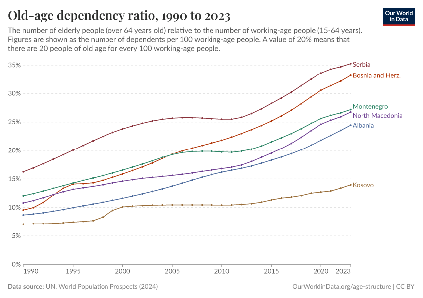 “Data Page: Old-age dependency ratio, age old”. Our World in Data (2025). Data adapted from United Nations. Retrieved from https://archive.ourworldindata.org/20250929-103213/grapher/age-dependency-ratio-old.html [online resource] (archived on September 29, 2025).How to cite this data