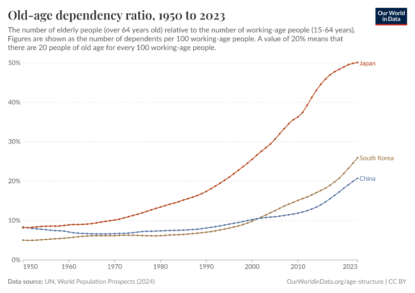 “Data Page: Old-age dependency ratio, age old”. Our World in Data (2025). Data adapted from United Nations. Retrieved from https://archive.ourworldindata.org/20250929-103213/grapher/age-dependency-ratio-old.html [online resource] (archived on September 29, 2025).How to cite this data
