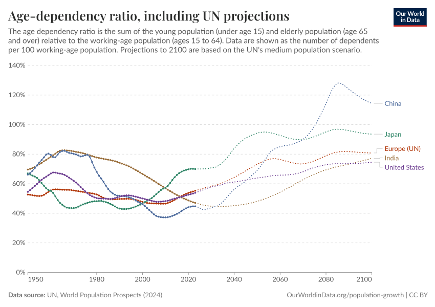- Population of young, working-age and elderlywith UN projections