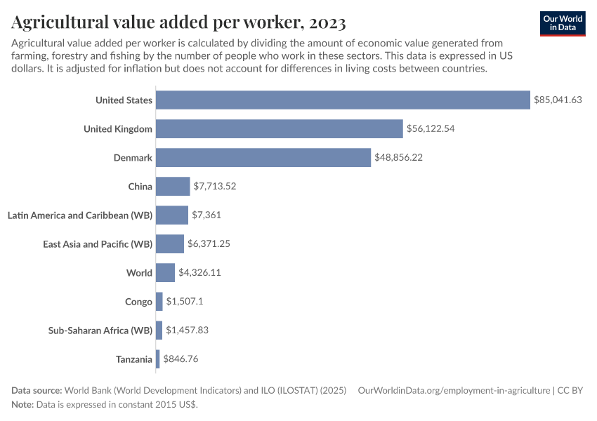 “Data Page: Agricultural value added per worker”. Our World in Data (2026). Data adapted from World Bank (World Development Indicators) and ILO (ILOSTAT). Retrieved from https://archive.ourworldindata.org/20260129-125221/grapher/agriculture-value-added-per-worker-wdi.html [online resource] (archived on January 29, 2026).How to cite this data
