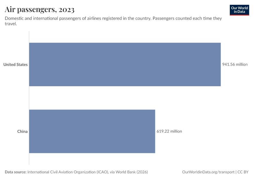 “Data Page: Air passengers”. Our World in Data (2026). Data adapted from International Civil Aviation Organization (ICAO), via World Bank. Retrieved from https://archive.ourworldindata.org/20260417-112857/grapher/air-passengers-carried.html [online resource] (archived on April 17, 2026).How to cite this data