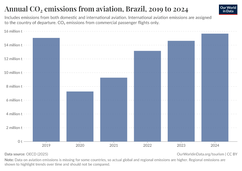 “Data Page: Annual CO₂ emissions from aviation”, part of the following publication: Bastian Herre and Veronika Samborska (2023) - “Tourism”. Data adapted from OECD. Retrieved from https://archive.ourworldindata.org/20250909-093708/grapher/annual-co-emissions-from-aviation.html [online resource] (archived on September 9, 2025).