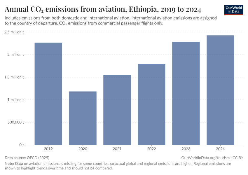 “Data Page: Annual CO₂ emissions from aviation”, part of the following publication: Bastian Herre and Veronika Samborska (2023) - “Tourism”. Data adapted from OECD. Retrieved from https://archive.ourworldindata.org/20250909-093708/grapher/annual-co-emissions-from-aviation.html [online resource] (archived on September 9, 2025).How to cite this data