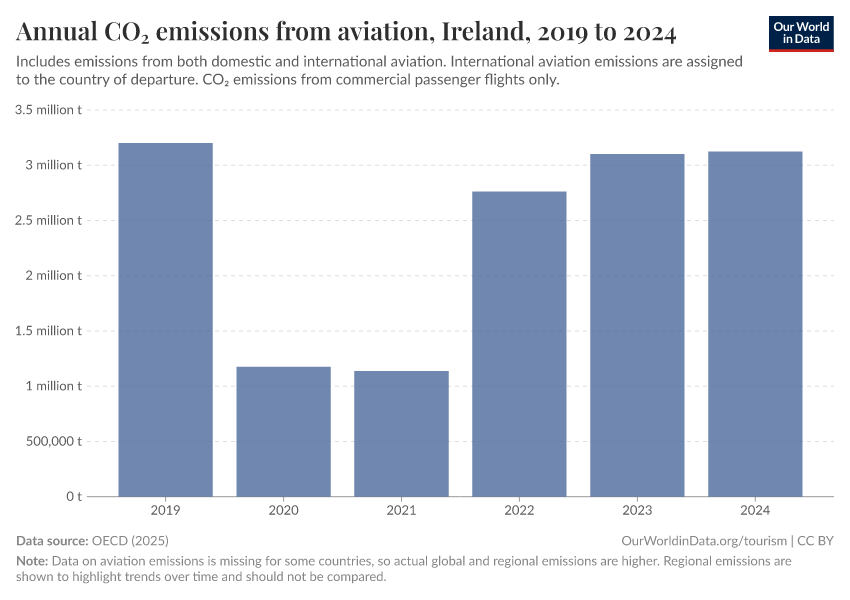 “Data Page: Annual CO₂ emissions from aviation”, part of the following publication: Bastian Herre and Veronika Samborska (2023) - “Tourism”. Data adapted from OECD. Retrieved from https://archive.ourworldindata.org/20250909-093708/grapher/annual-co-emissions-from-aviation.html [online resource] (archived on September 9, 2025).How to cite this data