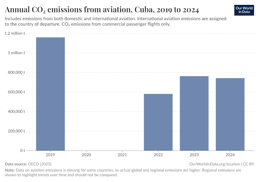 “Data Page: Annual CO₂ emissions from aviation”, part of the following publication: Bastian Herre and Veronika Samborska (2023) - “Tourism”. Data adapted from OECD. Retrieved from https://archive.ourworldindata.org/20250909-093708/grapher/annual-co-emissions-from-aviation.html [online resource] (archived on September 9, 2025).How to cite this data