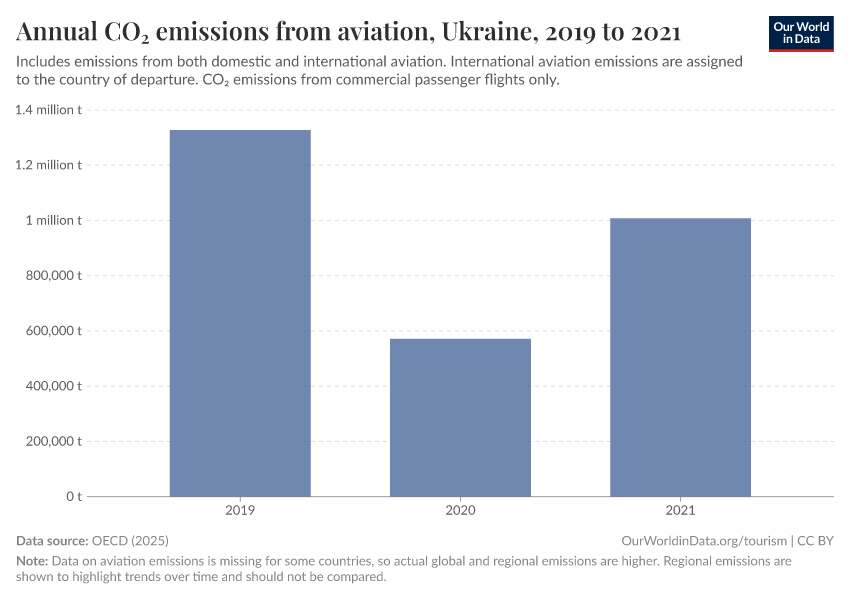 “Data Page: Annual CO₂ emissions from aviation”, part of the following publication: Bastian Herre and Veronika Samborska (2023) - “Tourism”. Data adapted from OECD. Retrieved from https://archive.ourworldindata.org/20250909-093708/grapher/annual-co-emissions-from-aviation.html [online resource] (archived on September 9, 2025).