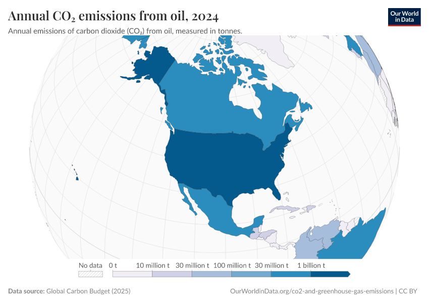 “Data Page: Annual CO₂ emissions from oil”, part of the following publication: Hannah Ritchie, Pablo Rosado, and Max Roser (2023) - “CO₂ and Greenhouse Gas Emissions”. Data adapted from Global Carbon Project. Retrieved from https://archive.ourworldindata.org/20251113-170236/grapher/annual-co2-oil.html [online resource] (archived on November 13, 2025).How to cite this data