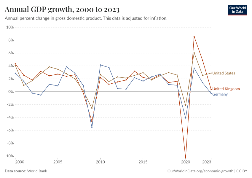 “Data Page: Annual GDP growth”. Our World in Data (2026). Data adapted from World Bank. Retrieved from https://archive.ourworldindata.org/20251125-165536/grapher/annual-gdp-growth.html [online resource] (archived on November 25, 2025).How to cite this data