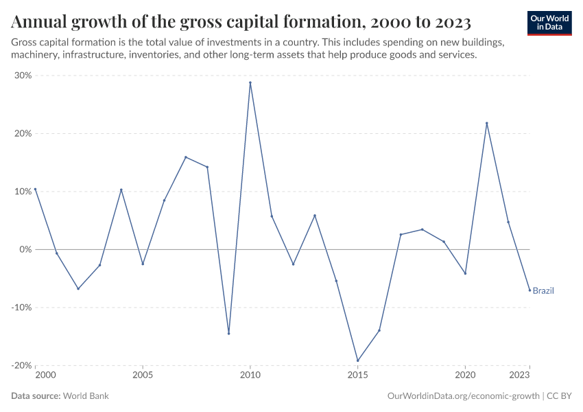 “Data Page: Annual growth of the gross capital formation”. Our World in Data (2025). Data adapted from World Bank. Retrieved from https://archive.ourworldindata.org/20251125-165536/grapher/annual-growth-of-the-gross-capital-formation.html [online resource] (archived on November 25, 2025).How to cite this data