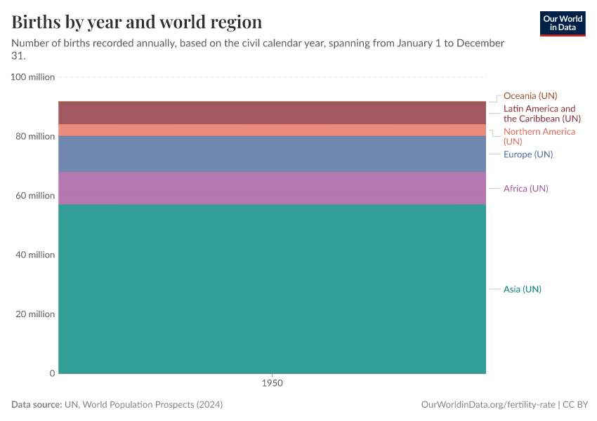 “Data Page: Births, total”. Our World in Data (2025). Data adapted from United Nations. Retrieved from https://archive.ourworldindata.org/20250925-232706/grapher/annual-number-of-births-by-world-region.html [online resource] (archived on September 25, 2025).How to cite this data