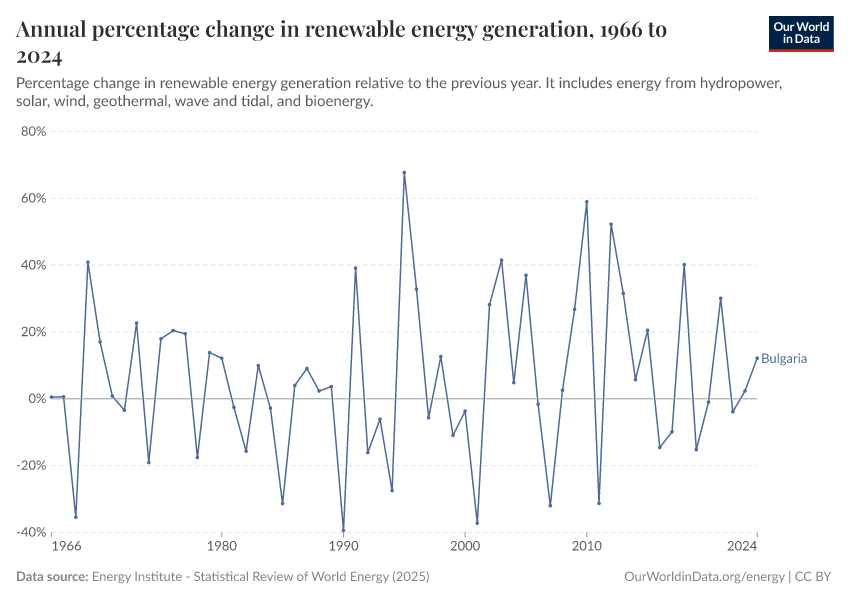 Energy Institute - Statistical Review of World Energy (2025) – with major processing by Our World in Data. “Annual percentage change in renewables consumption” [dataset]. Energy Institute, “Statistical Review of World Energy” [original data]. Retrieved December 5, 2025 from https://archive.ourworldindata.org/20250909-093708/grapher/annual-percentage-change-renewables.html (archived on September 9, 2025).