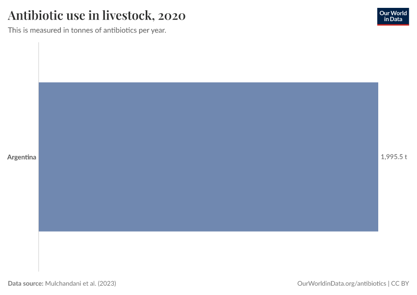 “Data Page: Antibiotic use in livestock”. Our World in Data (2026). Data adapted from Mulchandani et al.. Retrieved from https://archive.ourworldindata.org/20250909-093708/grapher/antibiotic-use-livestock-tonnes.html [online resource] (archived on September 9, 2025).