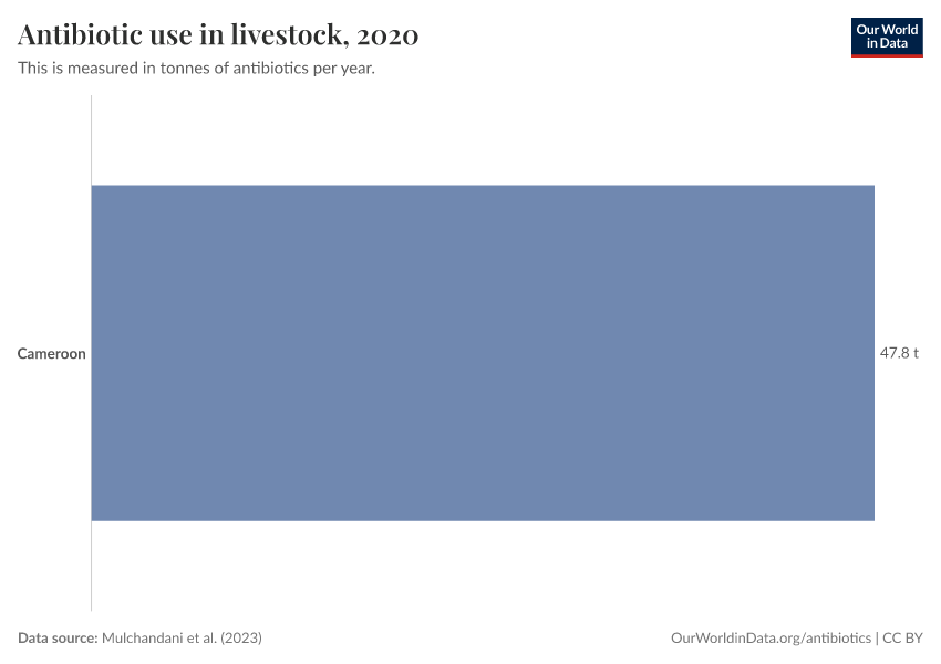 “Data Page: Antibiotic use in livestock”. Our World in Data (2026). Data adapted from Mulchandani et al.. Retrieved from https://archive.ourworldindata.org/20250909-093708/grapher/antibiotic-use-livestock-tonnes.html [online resource] (archived on September 9, 2025).How to cite this data