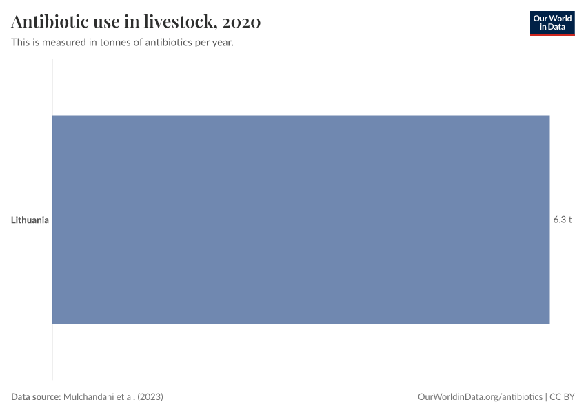 “Data Page: Antibiotic use in livestock”. Our World in Data (2026). Data adapted from Mulchandani et al.. Retrieved from https://archive.ourworldindata.org/20250909-093708/grapher/antibiotic-use-livestock-tonnes.html [online resource] (archived on September 9, 2025).