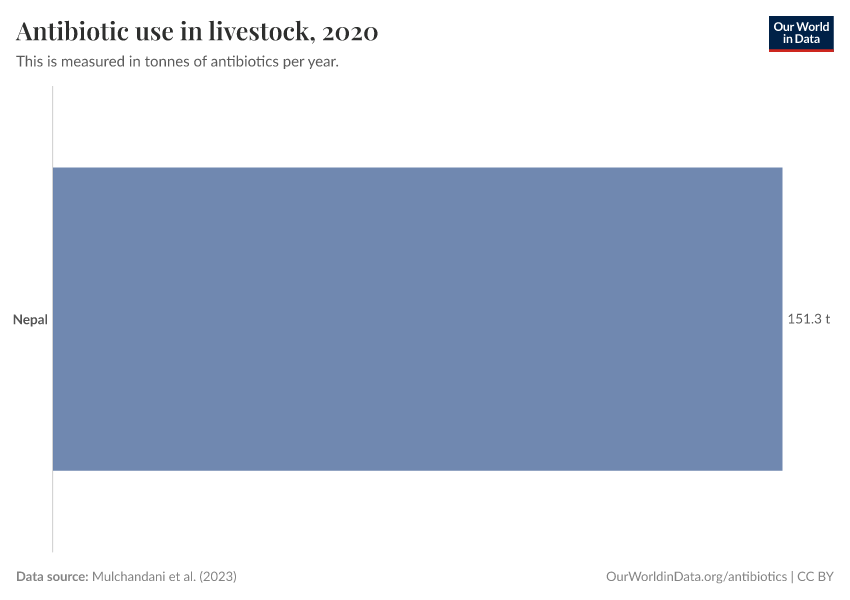 “Data Page: Antibiotic use in livestock”. Our World in Data (2025). Data adapted from Mulchandani et al.. Retrieved from https://archive.ourworldindata.org/20250909-093708/grapher/antibiotic-use-livestock-tonnes.html [online resource] (archived on September 9, 2025).How to cite this data