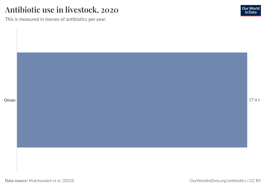 “Data Page: Antibiotic use in livestock”. Our World in Data (2026). Data adapted from Mulchandani et al.. Retrieved from https://archive.ourworldindata.org/20250909-093708/grapher/antibiotic-use-livestock-tonnes.html [online resource] (archived on September 9, 2025).How to cite this data