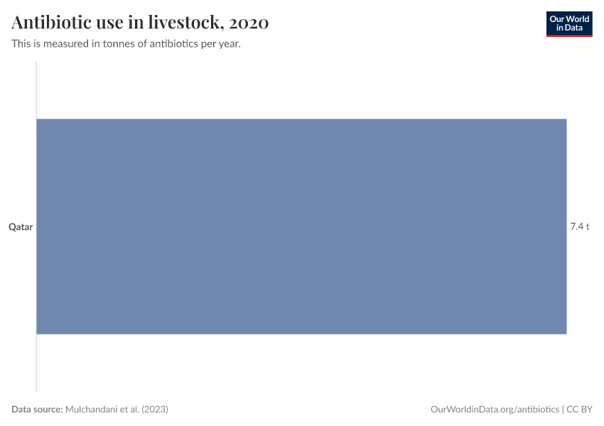 “Data Page: Antibiotic use in livestock”. Our World in Data (2025). Data adapted from Mulchandani et al.. Retrieved from https://archive.ourworldindata.org/20250909-093708/grapher/antibiotic-use-livestock-tonnes.html [online resource] (archived on September 9, 2025).
