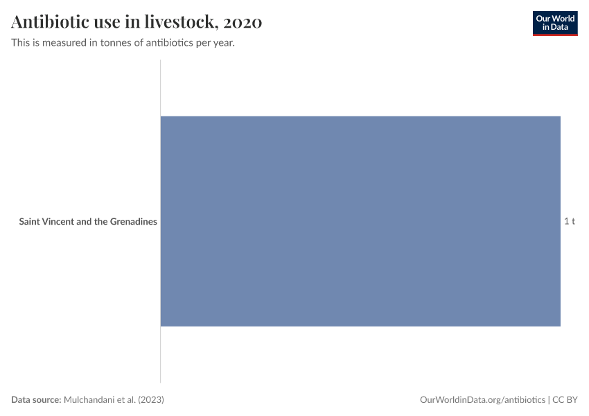 “Data Page: Antibiotic use in livestock”. Our World in Data (2026). Data adapted from Mulchandani et al.. Retrieved from https://archive.ourworldindata.org/20250909-093708/grapher/antibiotic-use-livestock-tonnes.html [online resource] (archived on September 9, 2025).