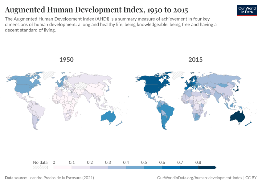 Leandro Prados de la Escosura (2021) – with minor processing by Our World in Data. “Augmented Human Development Index” [dataset]. Leandro Prados de la Escosura, “Augmented Human Development Index (AHDI) - Country data”; Leandro Prados de la Escosura, “Augmented Human Development Index (AHDI) - Regional data” [original data]. Retrieved January 1, 2026 from https://archive.ourworldindata.org/20251209-133038/grapher/augmented-human-development-index.html (archived on December 9, 2025).