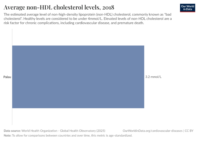 “Data Page: Average non-HDL cholesterol levels”. Our World in Data (2025). Data adapted from World Health Organization. Retrieved from https://archive.ourworldindata.org/20250909-093708/grapher/average-non-hdl-cholesterol-levels.html [online resource] (archived on September 9, 2025).How to cite this data