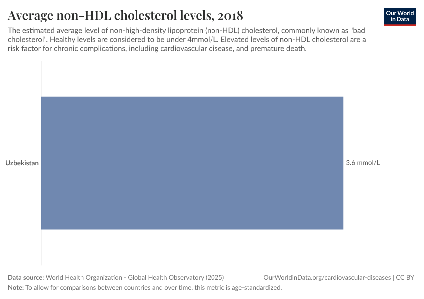 “Data Page: Average non-HDL cholesterol levels”. Our World in Data (2025). Data adapted from World Health Organization. Retrieved from https://archive.ourworldindata.org/20250909-093708/grapher/average-non-hdl-cholesterol-levels.html [online resource] (archived on September 9, 2025).How to cite this data