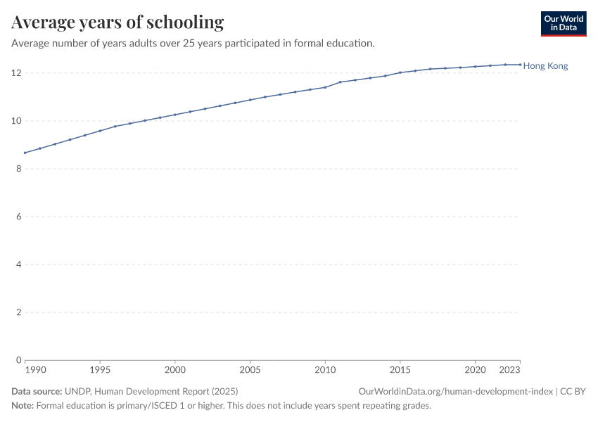 - The data comes from censuses and surveys of adults aged 25 and older, including only formal education starting from primary school.