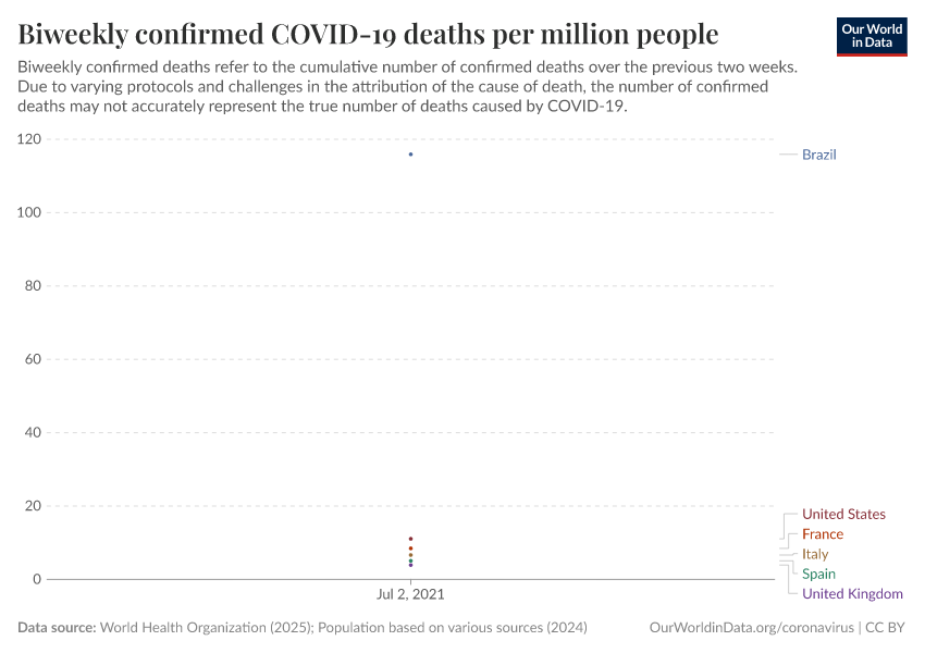 Biweekly confirmed COVID-19 deaths per million people