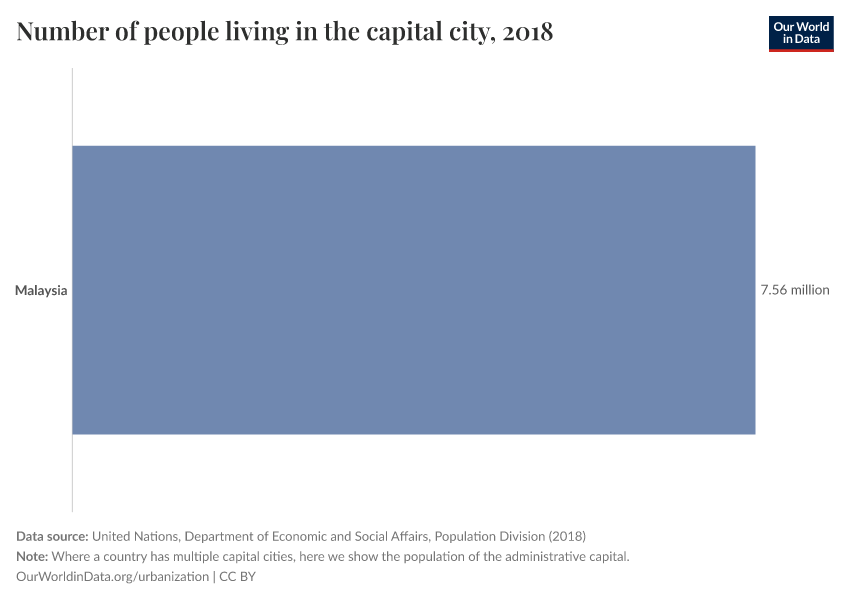 United Nations, Department of Economic and Social Affairs, Population Division (2018) – with minor processing by Our World in Data. “Number of people living in the capital city” [dataset]. United Nations, Department of Economic and Social Affairs, Population Division, “World Urbanization Prospects Dataset” [original data]. Retrieved January 11, 2026 from https://archive.ourworldindata.org/20250909-093708/grapher/capital-city-population.html (archived on September 9, 2025).