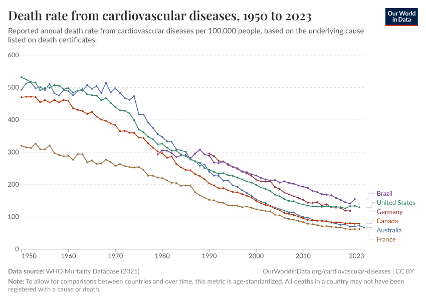 WHO Mortality Database (2025) – with minor processing by Our World in Data. “Death rate from cardiovascular diseases” [dataset]. WHO Mortality Database, “WHO Mortality Database” [original data]. Retrieved December 7, 2025 from https://archive.ourworldindata.org/20250909-093708/grapher/cardiovascular-disease-death-rate-who-mdb.html (archived on September 9, 2025).