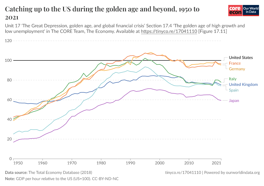 Catching up to the US during the golden age and beyond
