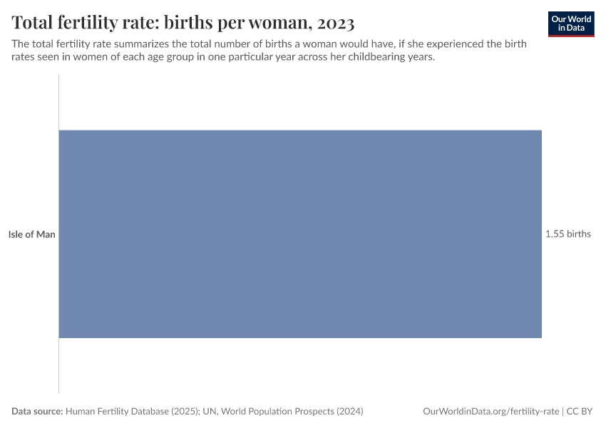 Human Fertility Database (2025); UN, World Population Prospects (2024) – with major processing by Our World in Data. “Fertility rate: births per woman – HFD, UN WPP – period tables” [dataset]. Human Fertility Database, “Human Fertility Database”; United Nations, “World Population Prospects”; United Nations, “World Population Prospects - Interim Update” [original data]. Retrieved April 9, 2026 from https://archive.ourworldindata.org/20260402-163007/grapher/children-born-per-woman.html (archived on April 2, 2026).Download