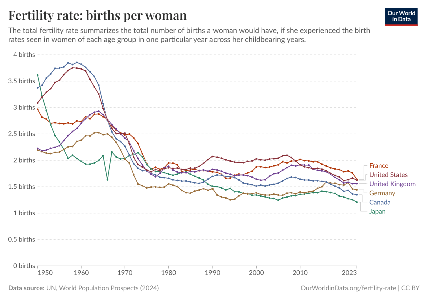 “Data Page: Fertility rate, total”. Our World in Data (2025). Data adapted from United Nations. Retrieved from https://archive.ourworldindata.org/20250909-093708/grapher/children-per-woman-un.html [online resource] (archived on September 9, 2025).