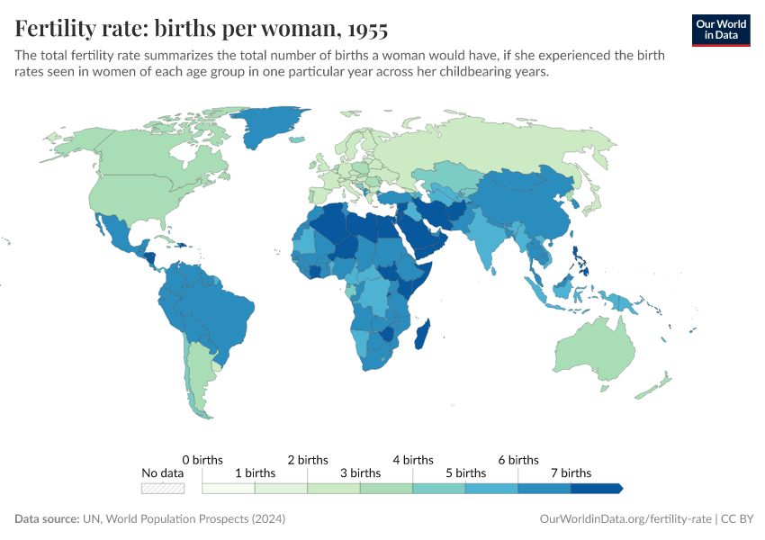 “Data Page: Fertility rate, total”. Our World in Data (2025). Data adapted from United Nations. Retrieved from https://archive.ourworldindata.org/20250909-093708/grapher/children-per-woman-un.html [online resource] (archived on September 9, 2025).How to cite this data