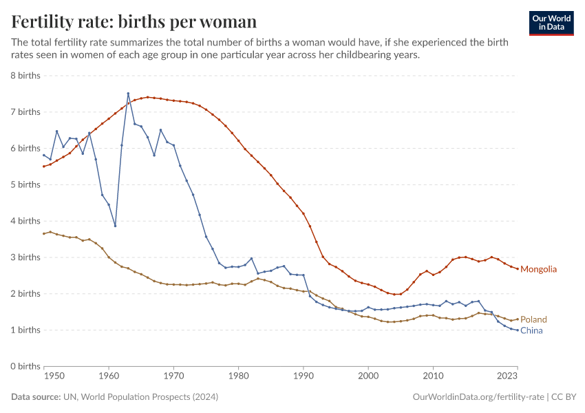 “Data Page: Fertility rate, total”. Our World in Data (2025). Data adapted from United Nations. Retrieved from https://archive.ourworldindata.org/20250909-093708/grapher/children-per-woman-un.html [online resource] (archived on September 9, 2025).How to cite this data