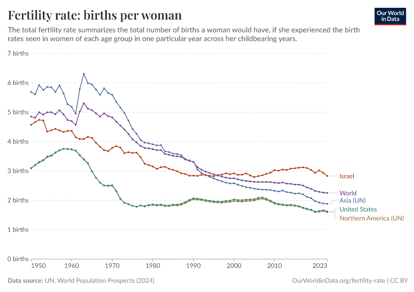 “Data Page: Fertility rate, total”. Our World in Data (2025). Data adapted from United Nations. Retrieved from https://archive.ourworldindata.org/20250909-093708/grapher/children-per-woman-un.html [online resource] (archived on September 9, 2025).How to cite this data