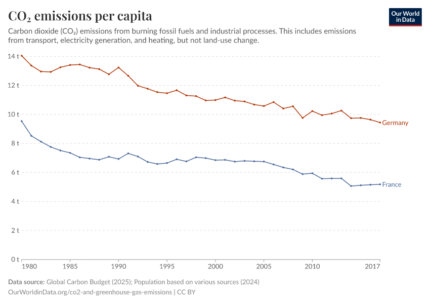 “Data Page: CO₂ emissions per capita”, part of the following publication: Hannah Ritchie, Pablo Rosado, and Max Roser (2023) - “CO₂ and Greenhouse Gas Emissions”. Data adapted from Global Carbon Project, Various sources. Retrieved from https://archive.ourworldindata.org/20251204-133459/grapher/co-emissions-per-capita.html [online resource] (archived on December 4, 2025).