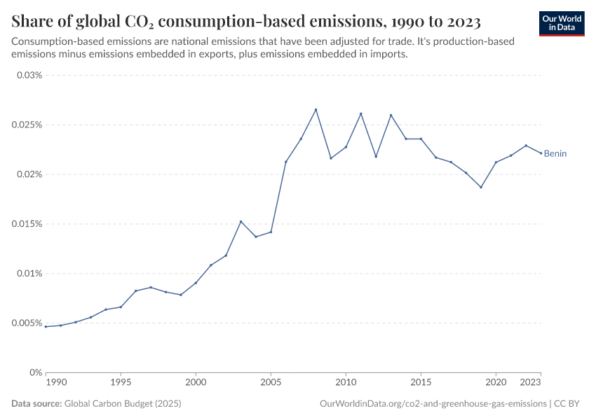 “Data Page: Share of global CO₂ consumption-based emissions”, part of the following publication: Hannah Ritchie, Pablo Rosado, and Max Roser (2023) - “CO₂ and Greenhouse Gas Emissions”. Data adapted from Global Carbon Project. Retrieved from https://archive.ourworldindata.org/20251204-133459/grapher/co2-consumption-share.html [online resource] (archived on December 4, 2025).How to cite this data