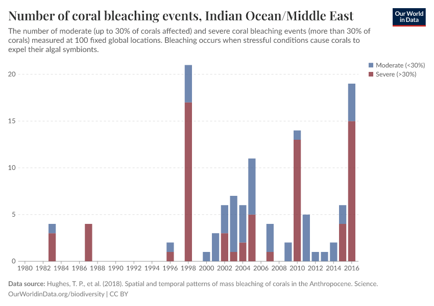 - Number of severe coral bleaching events by stage of the ENSO cycle