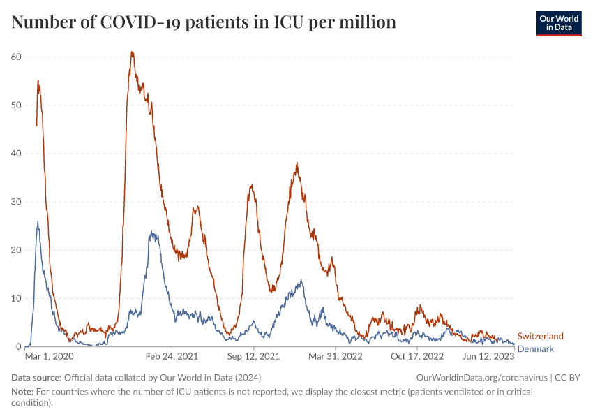Official data collated by Our World in Data (2024) – processed by Our World in Data. “Number of COVID-19 patients in ICU per million” [dataset]. Official data collated by Our World in Data, “COVID-19, hospitalisations” [original data]. Retrieved January 10, 2026 from https://archive.ourworldindata.org/20250909-093708/grapher/covid-icu-patients-per-million.html (archived on September 9, 2025).
