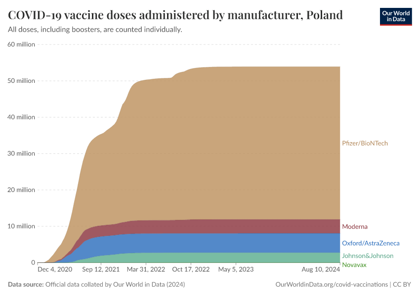 COVID-19 vaccine doses administered by manufacturer