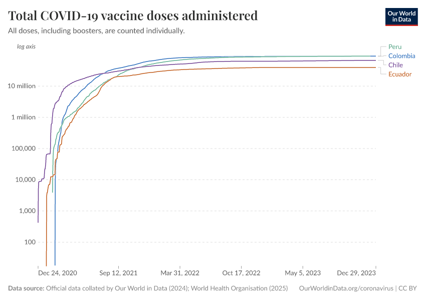 “Data Page: Total COVID-19 vaccine doses administered”, part of the following publication: Edouard Mathieu, Hannah Ritchie, Lucas Rodés-Guirao, Cameron Appel, Daniel Gavrilov, Charlie Giattino, Joe Hasell, Bobbie Macdonald, Saloni Dattani, Diana Beltekian, Esteban Ortiz-Ospina, and Max Roser (2020) - “COVID-19 Pandemic”. Data adapted from Official data collated by Our World in Data, World Health Organisation. Retrieved from https://archive.ourworldindata.org/20250909-093708/grapher/cumulative-covid-vaccinations.html [online resource] (archived on September 9, 2025).How to cite this data