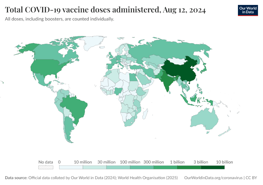 Official data collated by Our World in Data (2024); World Health Organisation (2025) – with major processing by Our World in Data. “Total COVID-19 vaccine doses administered” [dataset]. Official data collated by Our World in Data, “COVID-19, vaccinations”; World Health Organisation, “COVID-19, vaccinations (WHO)” [original data]. Retrieved March 14, 2026 from https://archive.ourworldindata.org/20260304-094028/grapher/cumulative-covid-vaccinations.html (archived on March 4, 2026).