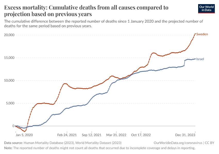 “Data Page: Excess mortality: Cumulative deaths from all causes compared to projection based on previous years”. Our World in Data (2025). Data adapted from Human Mortality Database, World Mortality Database, Karlinsky & Kobak. Retrieved from https://archive.ourworldindata.org/20251206-063317/grapher/cumulative-excess-deaths-covid.html [online resource] (archived on December 6, 2025).How to cite this data