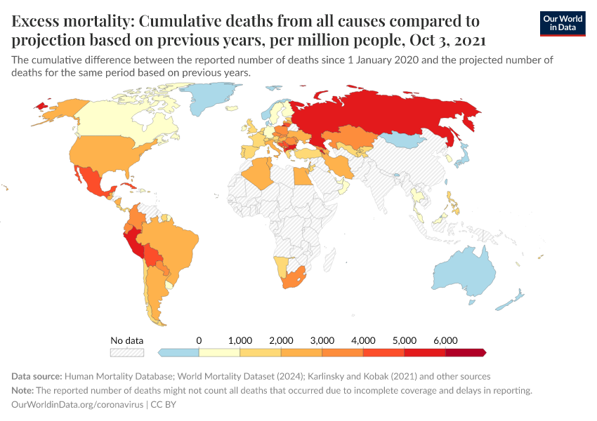 “Data Page: Excess mortality: Cumulative deaths from all causes compared to projection based on previous years, per million people”. Our World in Data (2025). Data adapted from Human Mortality Database, World Mortality Database, Karlinsky & Kobak. Retrieved from https://archive.ourworldindata.org/20251206-063317/grapher/cumulative-excess-deaths-per-million-covid.html [online resource] (archived on December 6, 2025).How to cite this data
