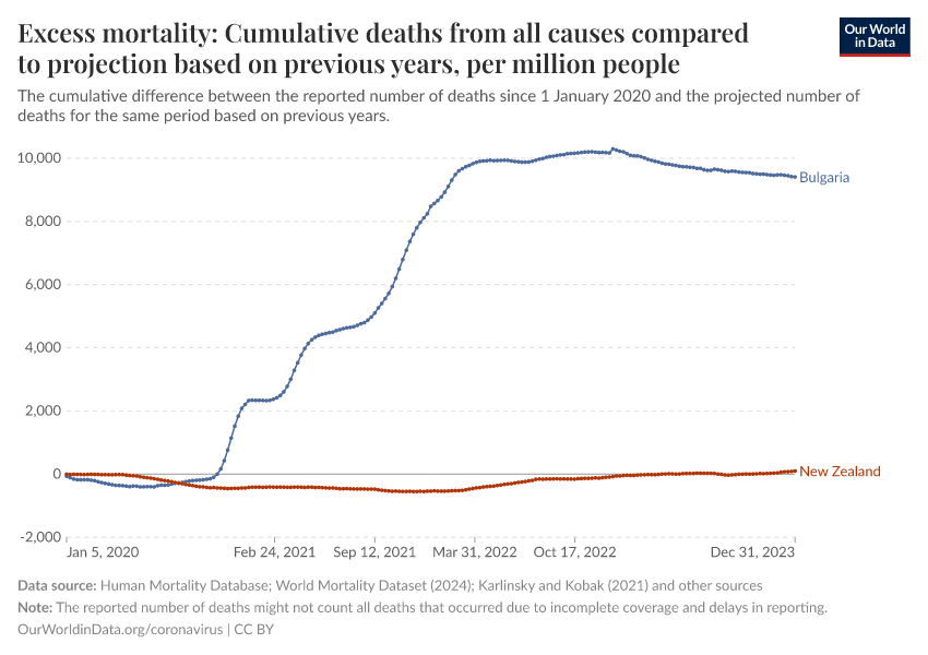 “Data Page: Excess mortality: Cumulative deaths from all causes compared to projection based on previous years, per million people”. Our World in Data (2025). Data adapted from Human Mortality Database, World Mortality Database, Karlinsky & Kobak. Retrieved from https://archive.ourworldindata.org/20251231-063342/grapher/cumulative-excess-deaths-per-million-covid.html [online resource] (archived on December 31, 2025).How to cite this data