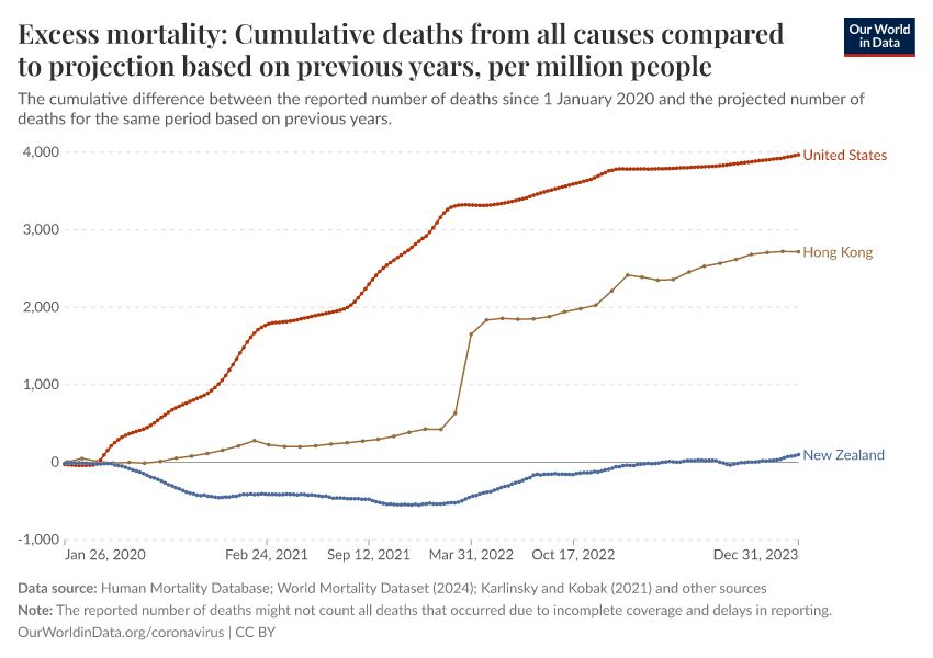 “Data Page: Excess mortality: Cumulative deaths from all causes compared to projection based on previous years, per million people”. Our World in Data (2026). Data adapted from Human Mortality Database, World Mortality Database, Karlinsky & Kobak. Retrieved from https://archive.ourworldindata.org/20260214-064421/grapher/cumulative-excess-deaths-per-million-covid.html [online resource] (archived on February 14, 2026).How to cite this data