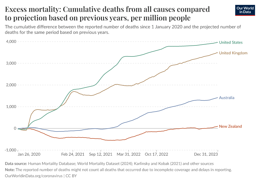 “Data Page: Excess mortality: Cumulative deaths from all causes compared to projection based on previous years, per million people”. Our World in Data (2026). Data adapted from Human Mortality Database, World Mortality Database, Karlinsky & Kobak. Retrieved from https://archive.ourworldindata.org/20260113-063322/grapher/cumulative-excess-deaths-per-million-covid.html [online resource] (archived on January 13, 2026).How to cite this data